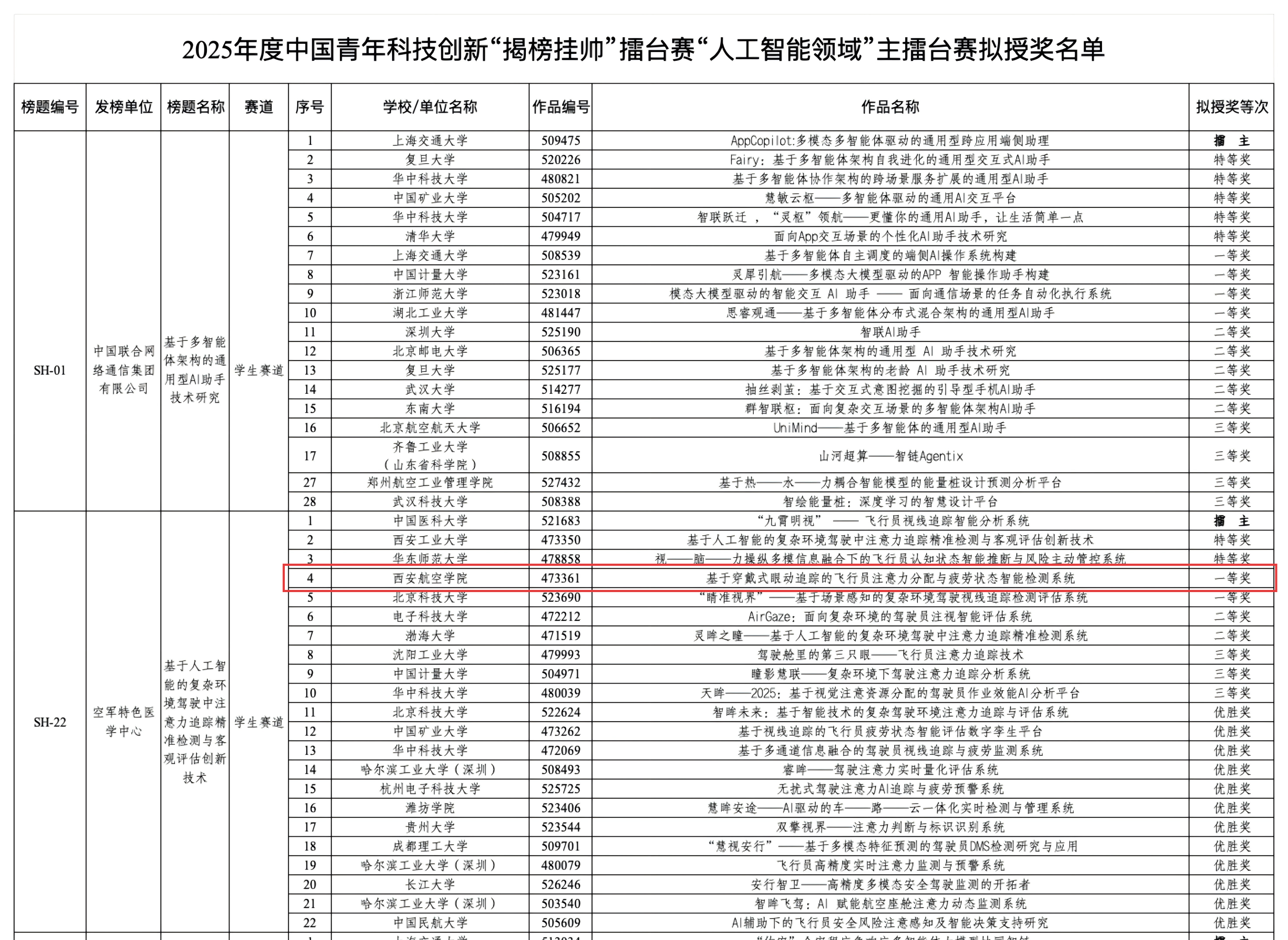 10月17日至20日,由共青团中央、中国科协、教育部、中国社会科学院、全国学联共同主办,共青团上海市委员会、上海市徐汇区人民政府联合承办的2025年度中国青年科技创新“揭榜挂帅”擂台赛人工智能领域主擂台赛在沪成功举办,来自全国506所高校的2200余支团队报名人工智能主擂台赛,710支入围终审的参赛团队激烈角逐。伟德官网团队首次入围国赛,与电子科技大学、华中科技大学等“双一流”高校同台竞技,凭借项目《基于穿戴式眼动追踪的飞行员注意力分配与疲劳状态智能检测系统》荣获全国一等奖,实现了学校在“挑战杯”国赛“揭榜挂帅”专项赛道的新突破。