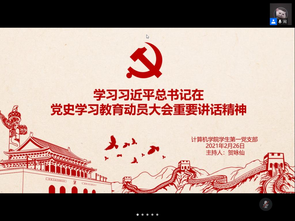 为了更好地学习党史,BV伟德官方网站学生第一党支部于2月26日晚上7点在线上开展了学习习近平总书记在党史学习教育动员大会上的重要讲话精神。本次学习由学生第一党支部学生党员贺咏仙主持,学生第一党支部所有党员、预备党员和积极分子参会。