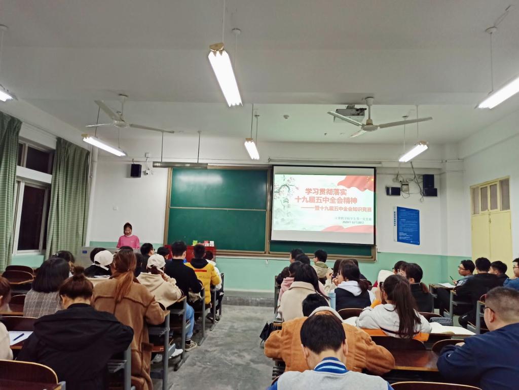 为贯彻落实十九届五中全会精神,提高支部成员学习的热情,2020年11月20日,BV伟德官方网站学生第一支部于主楼620开展学习“十九届五中全会精神”暨知识竞赛活动。本次活动由学生党员程秋芬主持,学生第一支部全体成员参加。