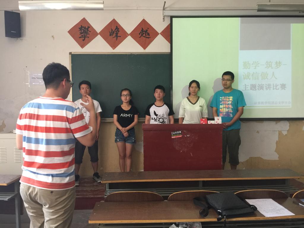 为了培养学生诚信意识,营造健康向上的校园氛围,BV伟德官方网站于6月23日中午在0321教室举办“与诚信同行,共筑中国梦”主题演讲比赛,评委由团总支书记米嘉琪担任。