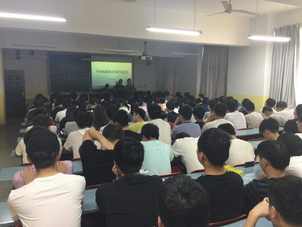 会上,分别考入西北工业大学、西安石油大学的饶磊和张荣同学向大家分享了各自的考研经验,内容包括教材的选用、时间进程的安排、心态的调整等,随后根据同学们准备考研过程中提出的问题进行了解答。荣东柱、管银乐和李川同学给大家分享了他们基于计算机专业就业的心得体会,针对大家提出的问题也都耐心地一一解答。整个交流会气氛热烈,不时地传出阵阵掌声。最后,米嘉琪希望同学能合理安排好自己学习和生活的时间,适当放弃一些课外活动,渐渐把重心转移到学业上来。