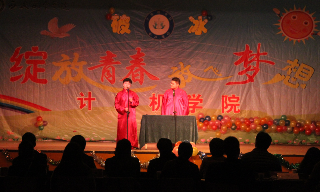 晚会以“破冰”为题,旨在消除彼此情感之间陌生的“冰”,分为节目表演和游戏互动两个环节。在活力的健美操中晚会正式拉开帷幕,首先是话剧《大话西游》,演员们的精彩演出使观众席爆发出阵阵笑声。随后的节目有三句半表演《四大才子话西航》、歌曲《我怀念的》、相声《说学逗唱》、小品《超级学生兵》、吉他独奏《无题》、朗诵舞蹈表演《致橡树》、汉服社表演的《风华录》。丰富的节目让观众们目不暇接,连连叫绝。