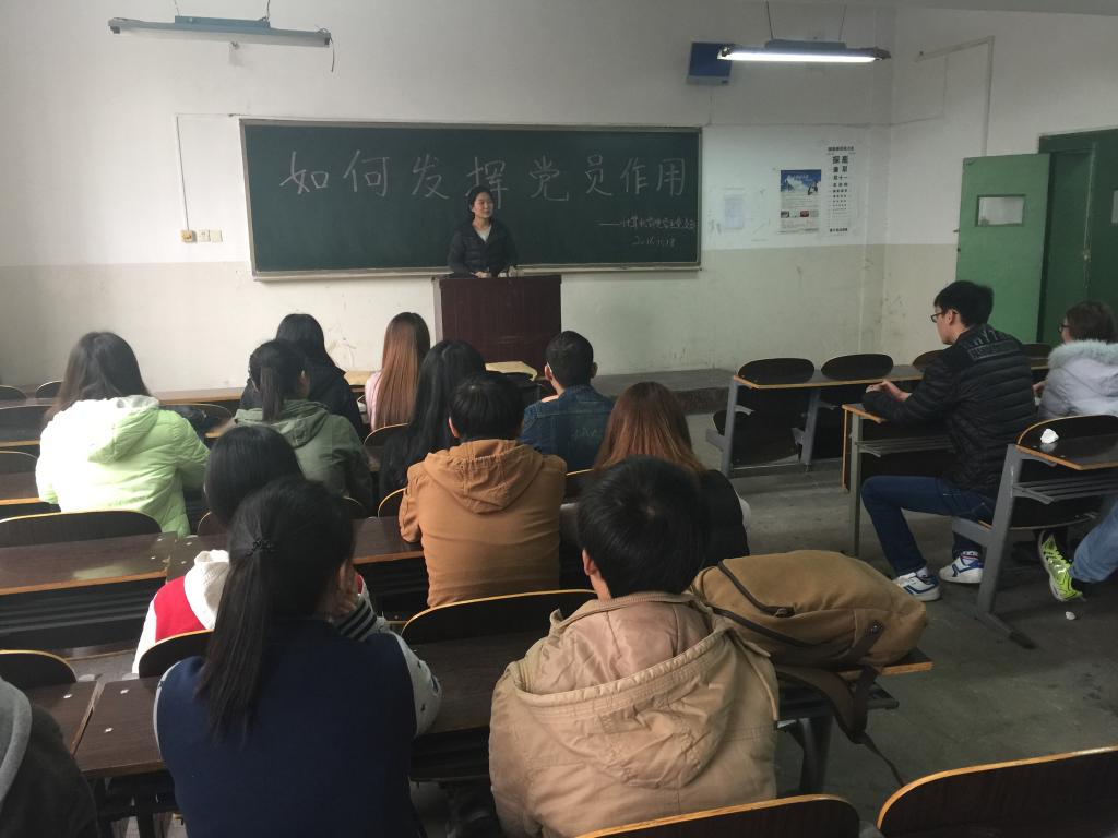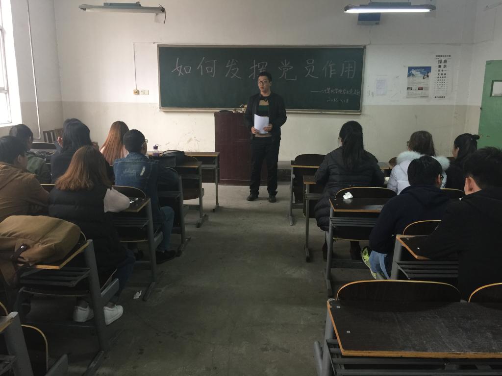 首先,米嘉琪向大家传达了《中共BV伟德官方网站委员会民主评议党员制度的实施办法》的通知,从自我评价、民主评议、组织考察、确定评议档次四个方面部署了2016年度学生党员的民主评议工作,要求全体党员在评议准备阶段认真学习《党章》和习近平总书记重要讲话,提高思想认识,端正评议态度,对自己一年来的各方面表现进行综合的检查和评价,努力做到求真务实,共同提高。接着,米嘉琪结合“两学一做”学习教育活动,就如何发挥党员作用进行讲述,希望大家认真学习领会“两学一做”精神,进一步提高党员思想觉悟;持之以恒地践行“两学一做”,把党员的先锋形象树起来;拓宽发挥渠道,推动“两学一做”取得实效,可以由党员牵头开展《党章》、准则、条例知识竞赛,激发其他同学的学习兴趣。最后,学生党员纷纷上台表达了自己的观点:践行“两学一做”并非一朝一夕,而是一个持久过程,只有党员真正接收,主动践行,才能充分发挥党员先锋模范作用,更好地服务大家。