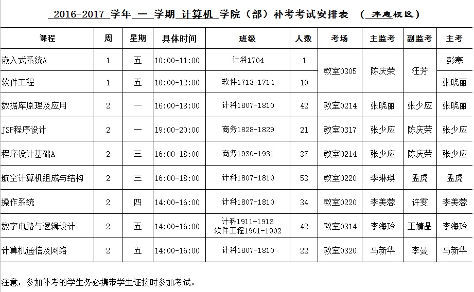2016-2017-2学期BV伟德官方网站补考安排表