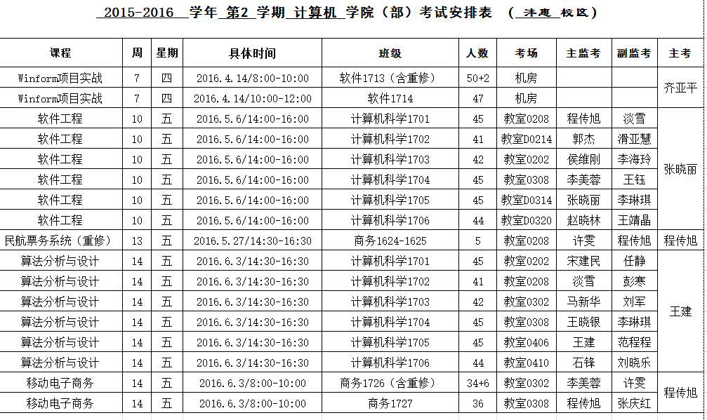 BV伟德官方网站2015-2016-2学期考试安排表(14周之前)