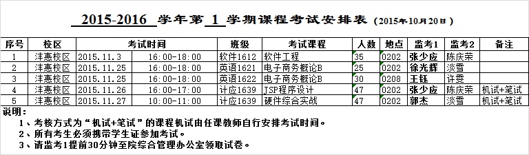 BV伟德官方网站2015-2016-1学期考试安排(一)