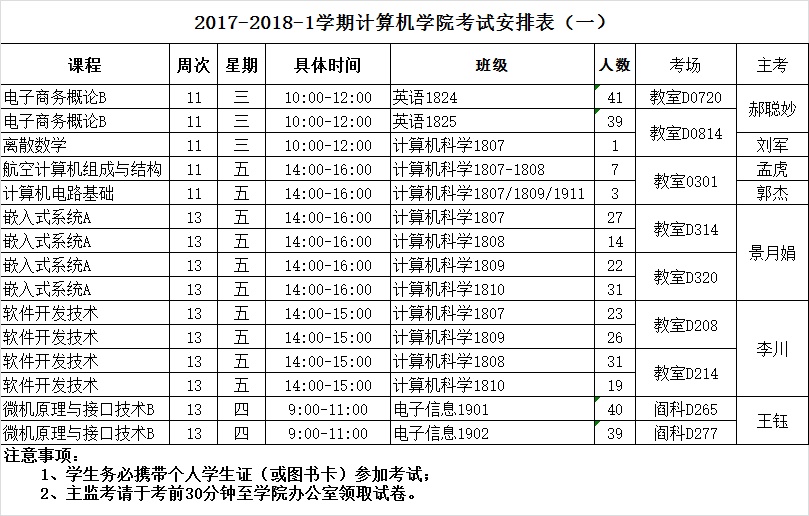 2017-2018-1学期BV伟德官方网站考试安排(一)