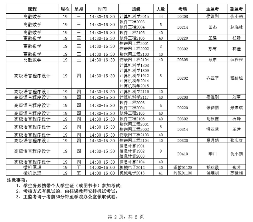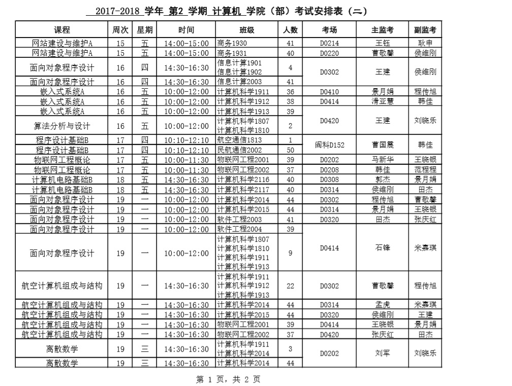 2017-2018-2学期考试安排(二)