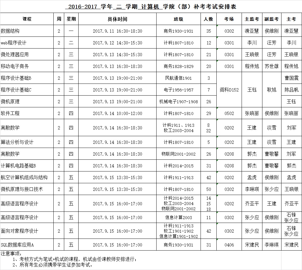 BV伟德官方网站2016-2017-2学期课程补考安排表