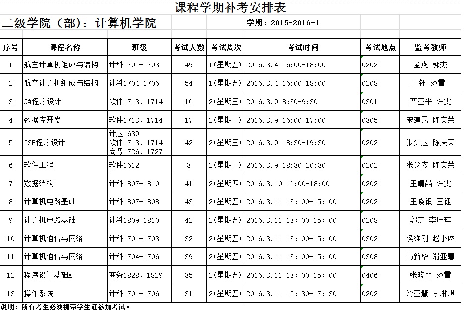 BV伟德官方网站2015-2016-1学期考试课程补考安排