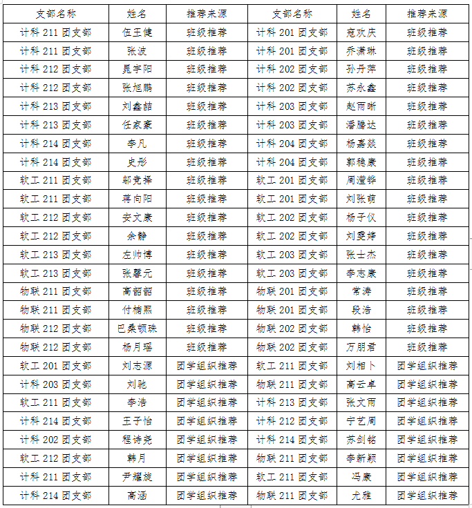为进一步规范学院“团内推优”工作,切实提高学院“推优入党”工作的质量,根据《共青团BV伟德官方网站委员会推荐优秀共青团员作为党的发展对象工作条例》(修订),《关于开展推荐优秀团员作为党的发展对象工作的通知》(西航团字〔2022〕4号),经过各基层团支部大会推优票决,团学组织推荐,BV伟德官方网站团总支审查,拟推荐下列52名优秀团员作为团内推优对象,具体名单如下: