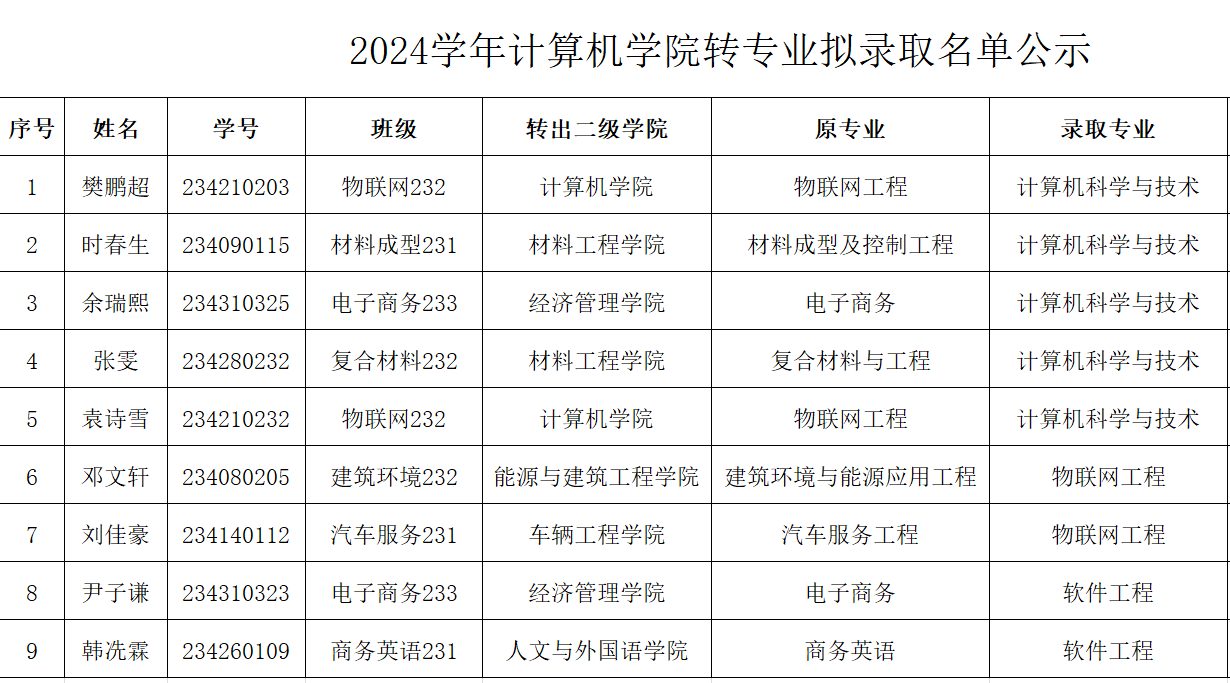 根据转专业文件相关要求及综合考核,对2024学年BV伟德官方网站转专业拟录取名单进行公示,公示期三天,如有异议,请电话至029-84252366.