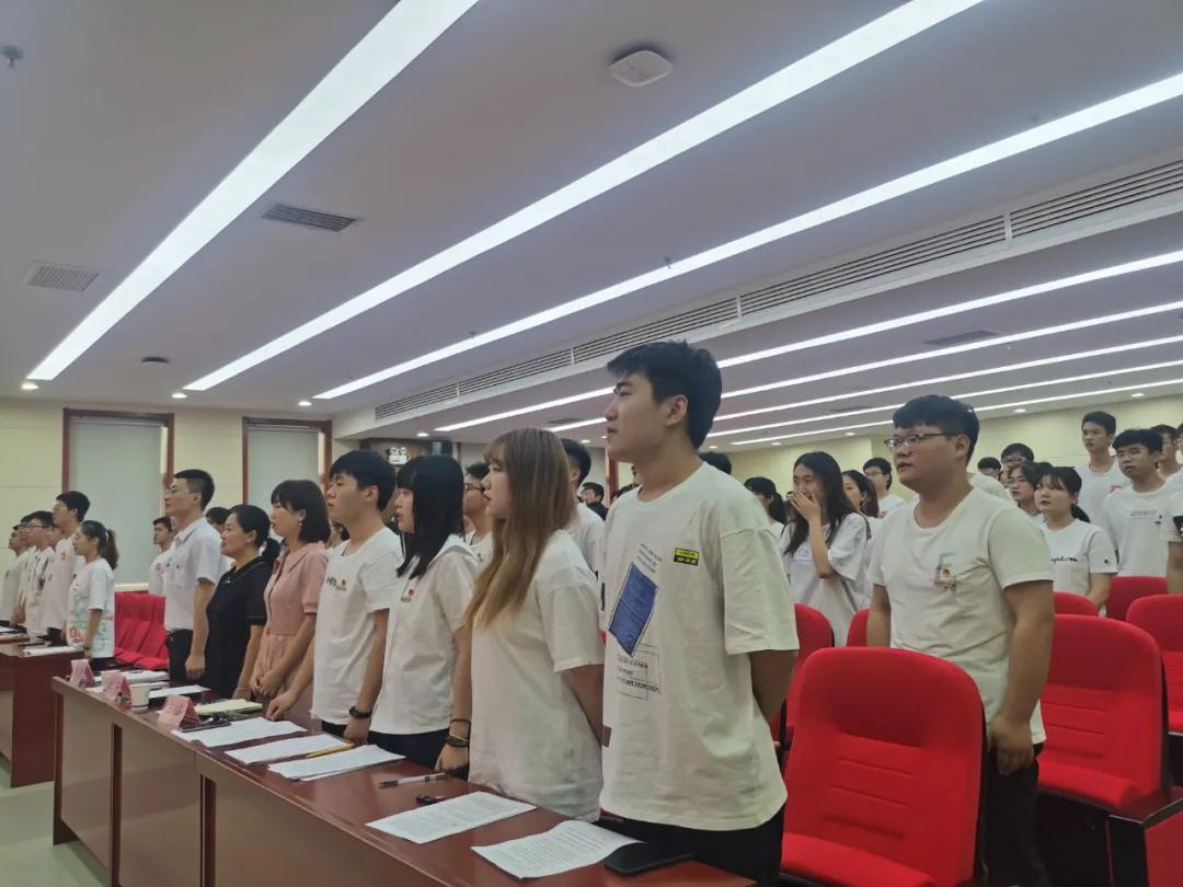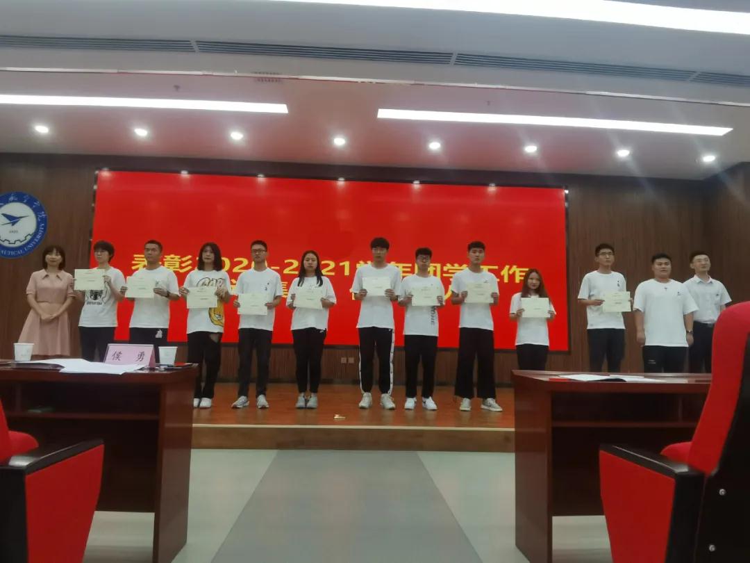 会议在庄重的国歌声中拉开帷幕。大会第一项,侯勇老师宣读《BV伟德官方网站关于2020-2021学年团学工作先进集体、优秀个人的决定》,随后汪芳、王靖晶老师为获奖团支部、受表彰个人颁奖。
