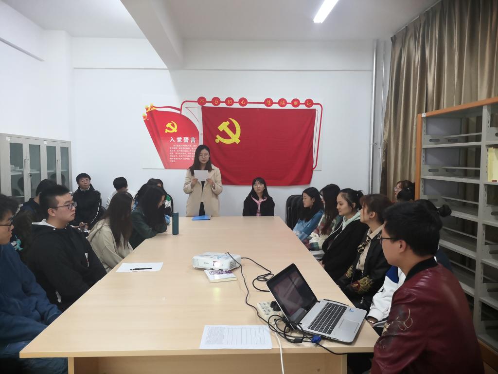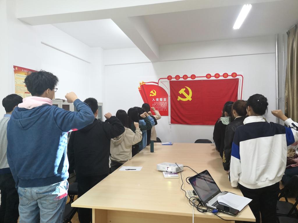 10月31日,BV伟德官方网站学生党支部于三号公寓一楼党团活动室举行了预备党员入党宣誓仪式。十三名预备党员、学生正式党员代表和积极分子代表参加了此次活动,仪式由学生党员贾帅主持。
