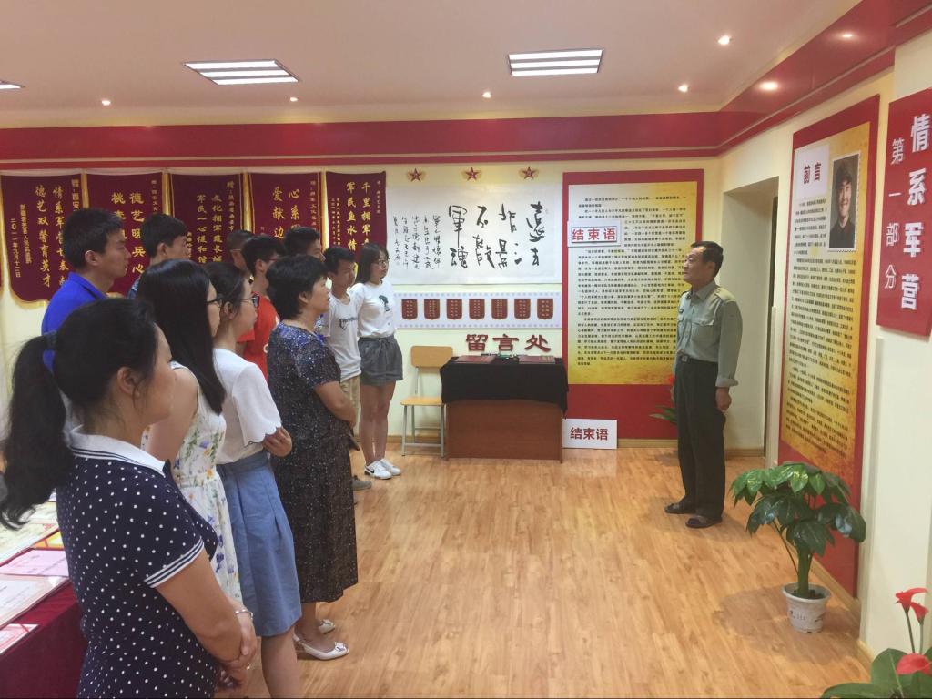 我校退休职工双拥模范李新建老师以他几十年的工作经验和人生阅历在展馆进行了生动深情的讲解。展馆分情系军营、拥军之路、团结协作、拥军硕果四个部分,各种照片,实物和证书充分展现了李老师全心全意投入拥军工作,心系部队,情系军营的优良作风,以及走遍祖国大江南北,为全国各地尤其是新疆边防士兵做文艺工作培训的艰苦历程和丰硕成果。