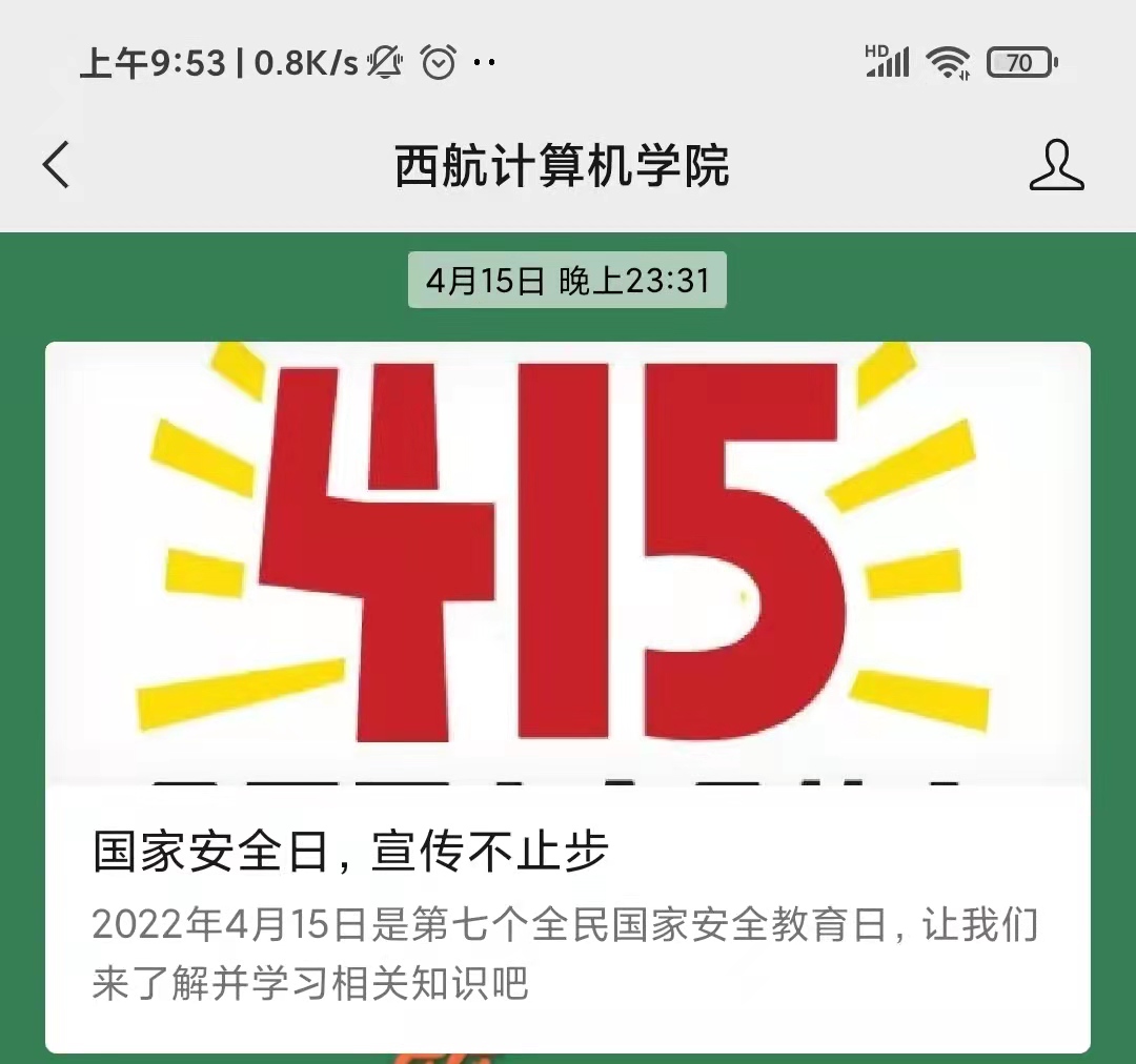 此前,BV伟德官方网站党总支已通过微信公众号等推送了多期国家安全法律法规基本知识和新时代国家安全取得的成就等内容,有针对性地做好国家安全宣传工作。接下来,还将组织师生积极参与全民国家安全教育日专项答题等线上宣传教育活动,有效引导师生爱国、励志、求真、力行,切实筑牢总体国家安全观。