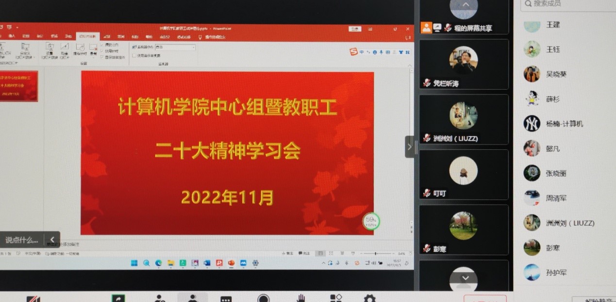 11月3日下午,BV伟德官方网站党总支以线上会议方式,举行了理论学习中心组暨教职工二十大精神学习会。人文学院党总支书记杨光和校党委组织部杨常清同志到会巡学旁听,学院中心组成员和全体教职工参加了会议,学院党总支书记胡红亮主持本次学习会。