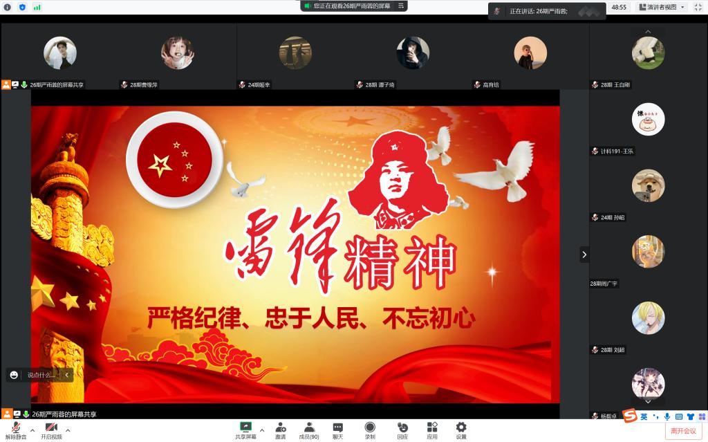 为弘扬雷锋精神,凝聚青春力量。3月14日晚,BV伟德官方网站学生第二党支部通过腾讯会议开展了以“雷锋精神”为主题的线上党课。本次党课由缪佳玉和严雨蓉主持,BV伟德官方网站学生第二党支部全体党员、积极分子参加。