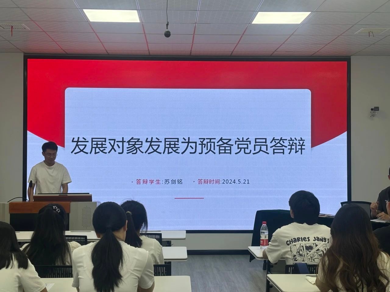 大会在庄严肃穆的国歌声中拉开序幕。首先,王胜茂等24名发展对象进行答辩。他们分别从思想、学习和生活等方面汇报了个人一年来的表现、目前存在的不足和今后的努力方向。随后,在场正式党员宣读了培养人意见以及政审报告,对发展对象的政治表现、道德品质、学习能力、工作能力等方面进行了全面评价。